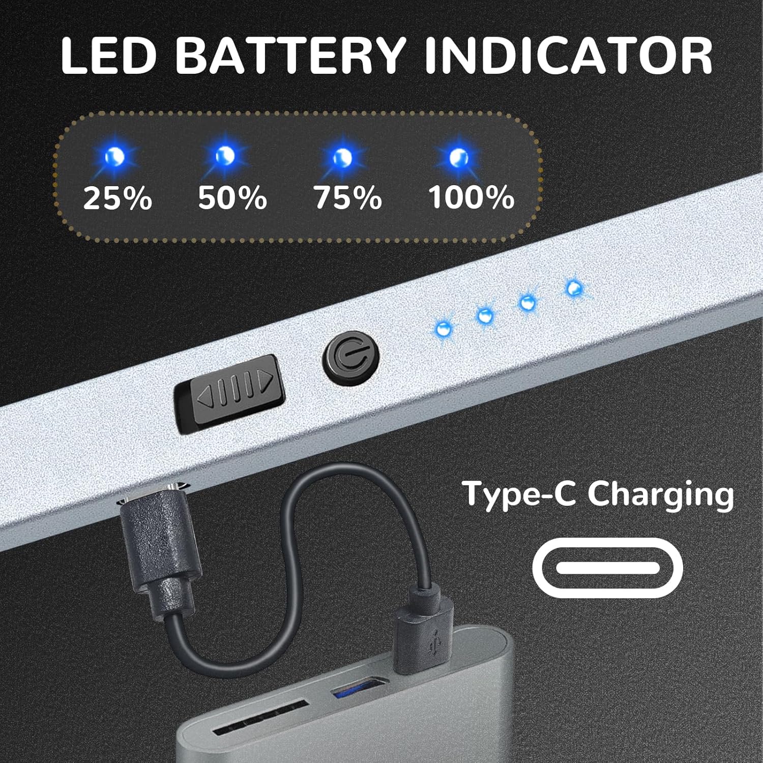 Type C USB RECHARGEABLE: Say goodbye to refills! TYPE-C USB cable included for your convenience to plug in the power to any USB or charger. Built-in large capacity battery, and 4 led power indicator lights to remind you when it should be charged